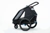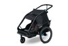 einfache Handhabung, Sitz- und Rückenpolster, verstellbare Kopfpolster mit Helmpocket, Heckfenster, Sonnen-, Fliegen- und Spritzwasserschutz, höhenverstellbarer, ergonomischer Griff, seitliche Belüftung, 70 Liter Kofferraum, verstellbare Federung, Quick-Release Räder, farblich abgesetzte Funktionsteile, reflektierende Elemente, inkl. Deichsel, Fahne, Buggyrad, Rücklicht mit Batterien, Max. Zuladung 42 kg, Stützlast: 1 - 8 kg